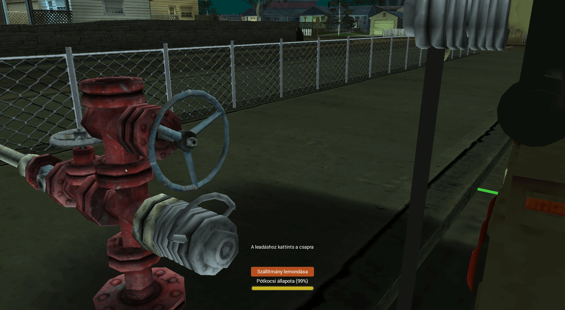Miután megérkeztünk az üzemanyag leadási pontjára parkoljunk be a kamionnal a téglalapra amint a pótkocsi megfelelő helyzetbe kerül a téglalap zöldre vált. Ezután szálljunk ki a kamionból és menjünk el pótkocsi végében található csapra és kattintsunk rá ezzel a csövet ráerősítve.